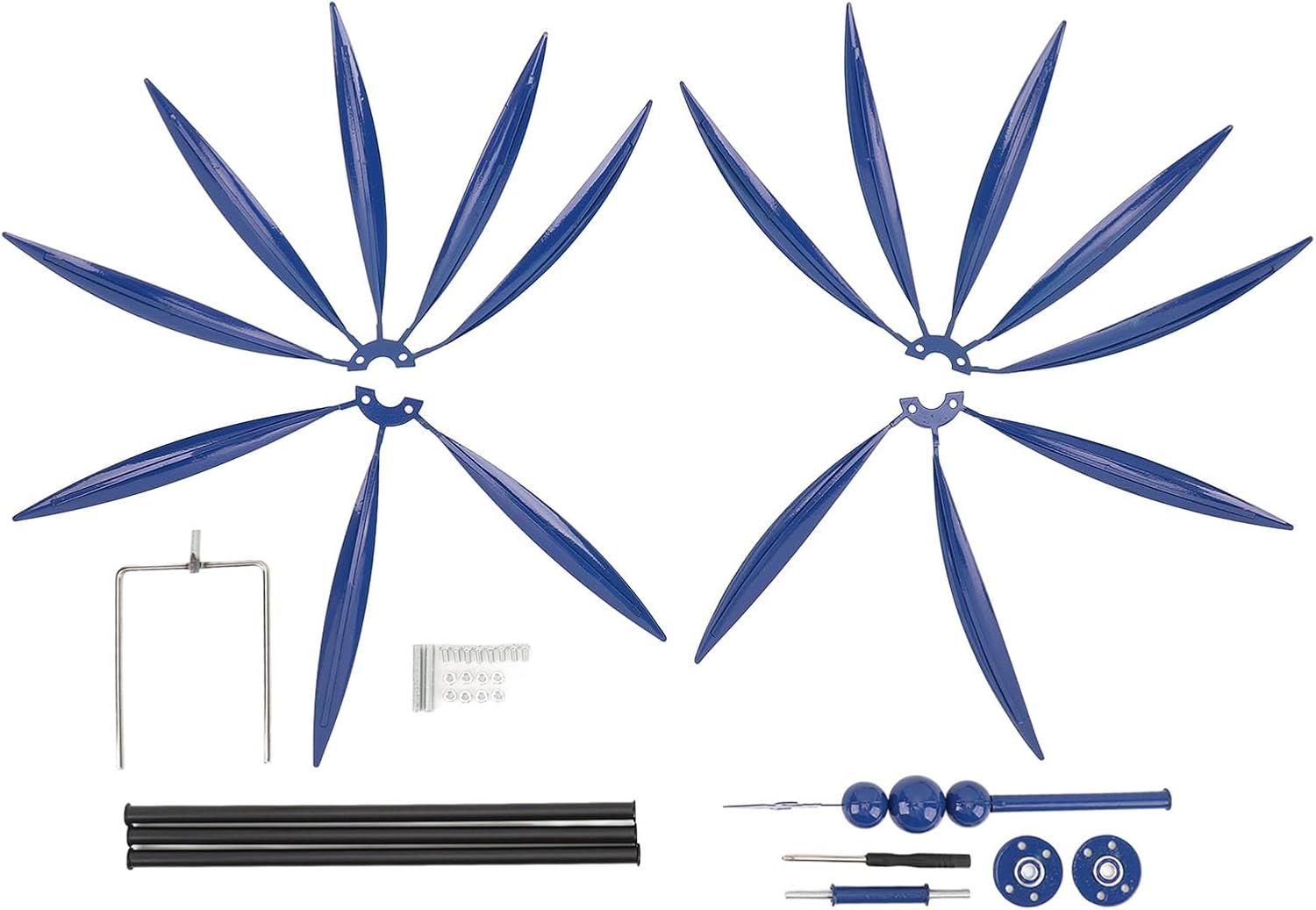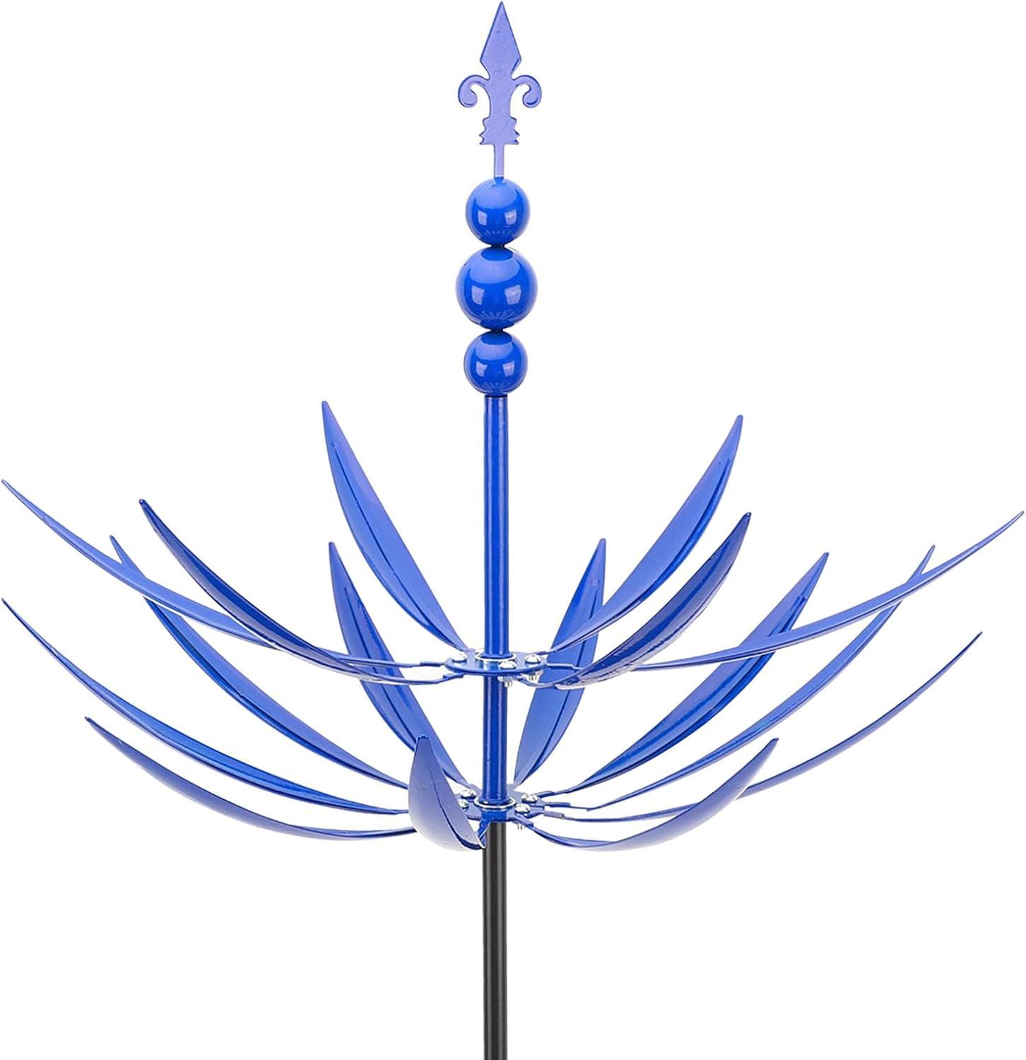 Iron Art Wind Spinner: This wind spinner is crafted with excellent iron material, ensuring excellent erosion and durability. Featuring bright metal gloss and reflective paint gloss, adding a unique art touch to your outdoor garden or yard.Wind Motion Design: The unique dual wind movement mechanism allows the 2 layers of leaves to elegantly rotate in opposite directions on sealed bearings, creating a dynamic balance visual picture that harmoniously combines technology and nature.Water Proof Paint: The leaf is covered with water proof paint, effectively resisting erosion from rain, sun, and other outdoor elements, ensuring the wind spinner retains its new appearance and stable performance in most weather conditions.360 Degree Rotating: The sturdy metal structure paired with ground stake design ensures the wind spinner is securely rooted in the soil, with 360 degree rotating, maintaining stability even in strong wind weather, providing security for your garden.Versatile Use: The rotating windmill is not only a fine outdoor decorative piece enhancing the overall beauty and art ambiance of your garden, but also a practical wind device that promotes air circulation between plants through rotation, positively impacting the garden ecology.